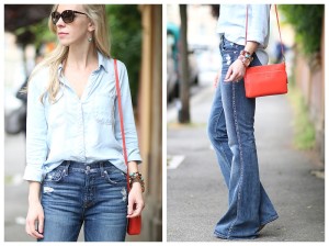 7 for all mankind high waist vintage bootcut jeans, rails LA chambray shirt, how to wear denim on denim, high waist flare jeans outfit May 18, 2015 by Meagan 0 Comments
