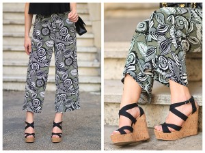 BP black wedge sandals, how to wear sandals with wide leg culottes, LOFT tropical olive wide leg cropped pants July 21, 2015 by Meagan 0 Comments
